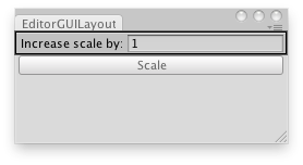 void OnGUI() { sizeMultiplier = EditorGUILayout.FloatField("Increase scale by:", sizeMultiplier);