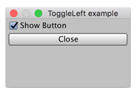 void OnGUI() { showBtn = EditorGUILayout.ToggleLeft("Show Button", showBtn); if (showBtn) { if (GUILayout.Button("Close")) { this.Close(); } } } }