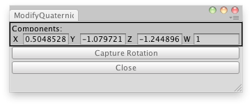 public class ModifyQuaternionDirectly : UnityEditor.EditorWindow { Quaternion quat; public Vector4 value;