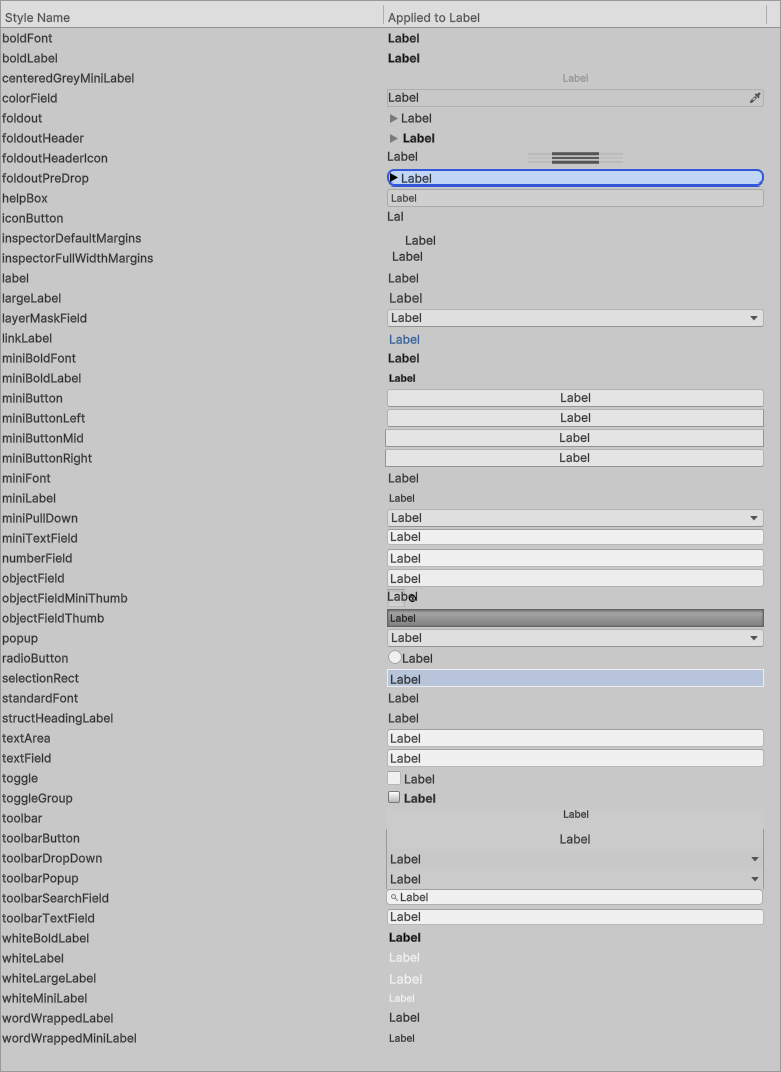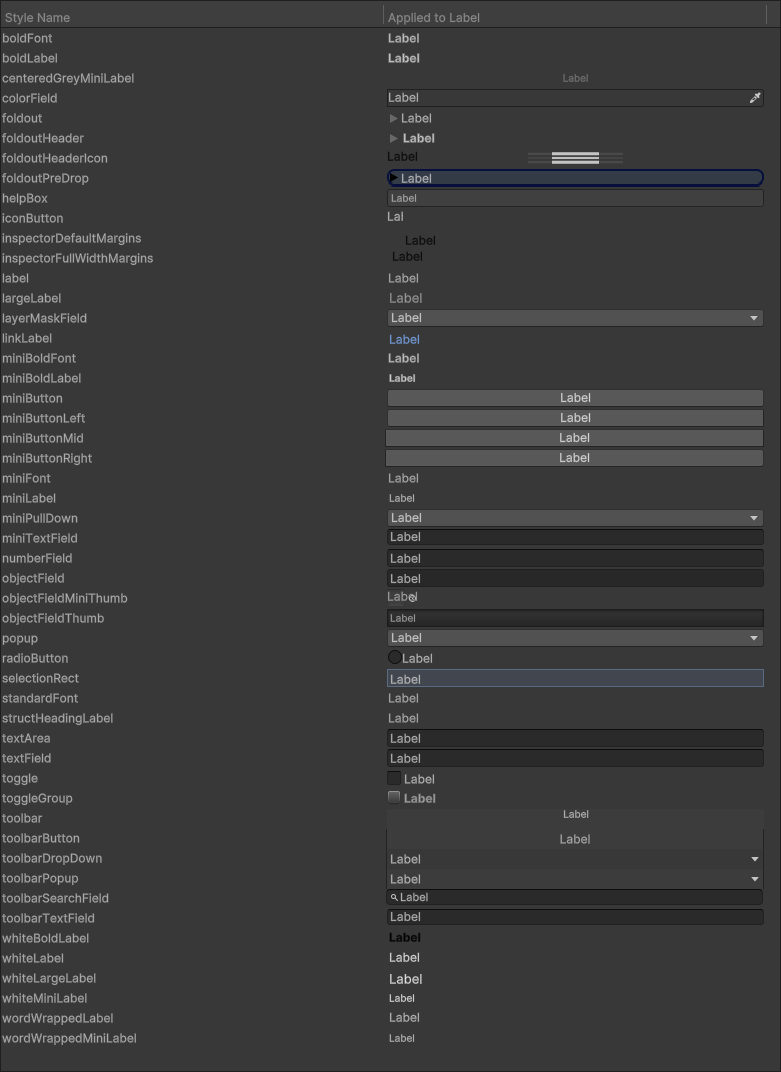 labelStyle used for the labelled on all EditorGUI overloads that take a prefix label.
