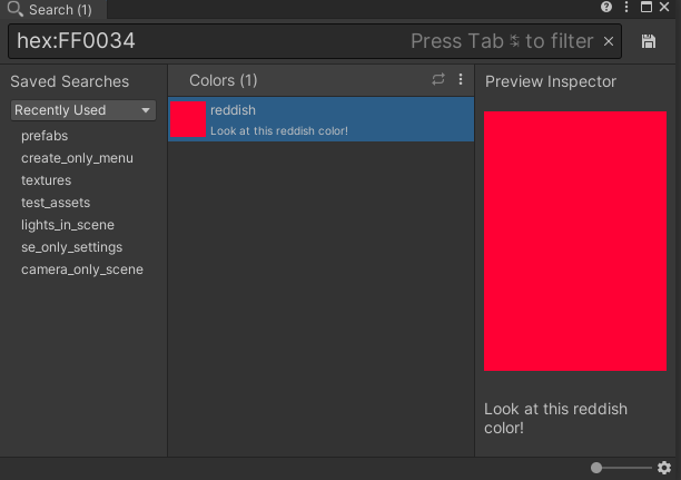 [SearchItemProvider] internal static SearchProvider CreateProvider() { return new SearchProvider(id, name) { filterId = "hex:", priority = 99999, // put example provider at a low priority showDetailsOptions = ShowDetailsOptions.Description | ShowDetailsOptions.Preview, fetchItems = (context, items, provider) => FetchItems(context, provider), fetchPreview = (item, context, size, options) => { return CreateTextureFromColor(item.id, (int)size.x, (int)size.y); }, }; }