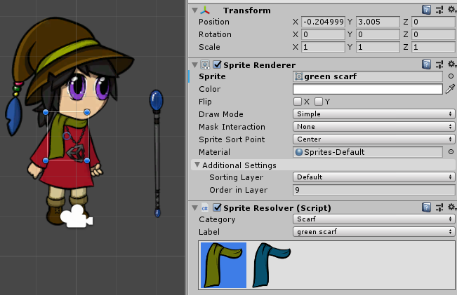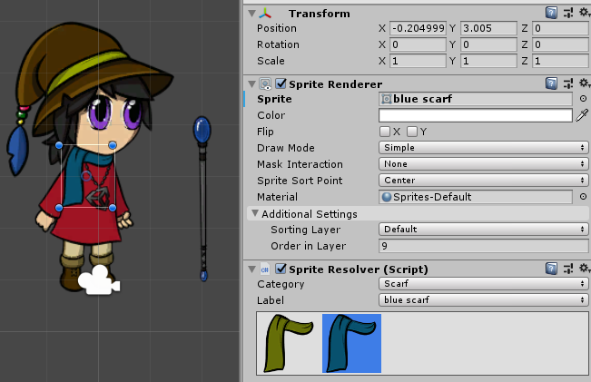 Sprite Resolver’s Label set to ‘blue scarf’.