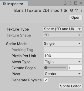 - Select the Sprite Editor button in the Inspector window to open the actor in the Sprite Editor.