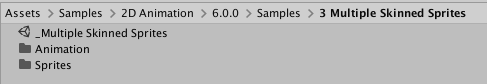 Assets/Samples/2D Animation/[X.Y.Z]/Samples/3 Multiple Skinned Sprites/Animation/Animator/Rikrand assign this Asset to the Animator’s Controller property.