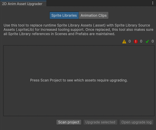 Open the 2D Animation Asset Upgrader.