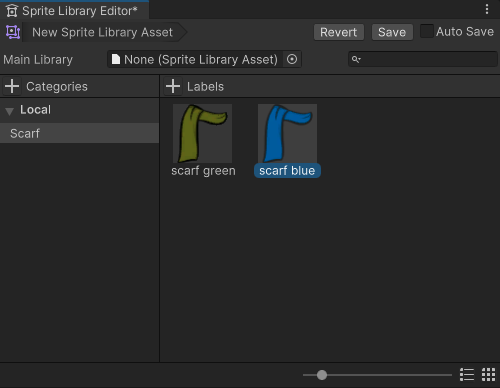 Place the Sprites for both scarves into the same Sprite Library Asset, and add them both to the same Category (named