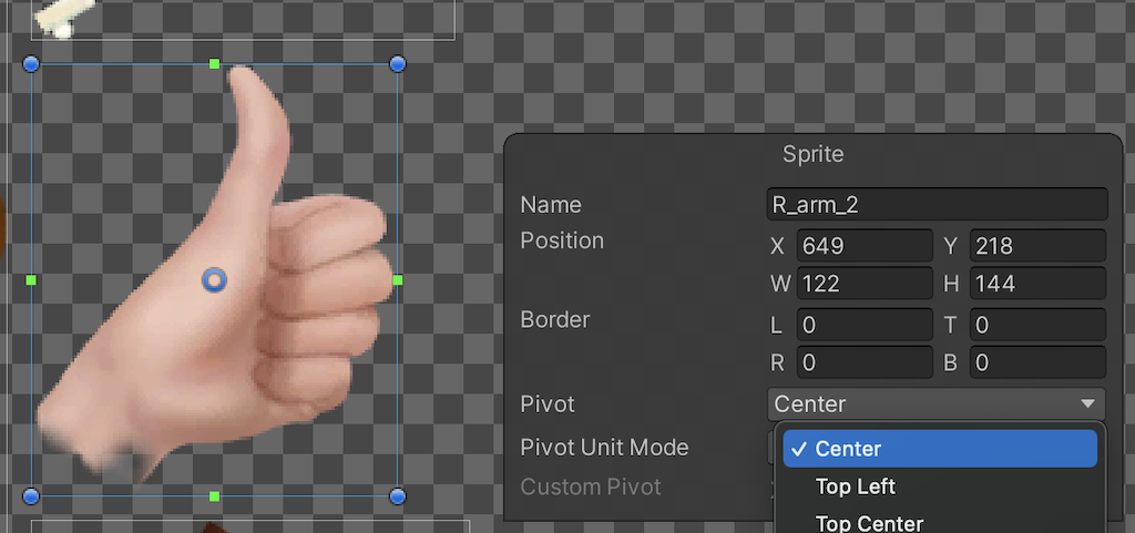 Note: If a Sprite is rigged to a skeleton, then its individual pivot location is overridden by the influence and position of the bone it is weighted to .