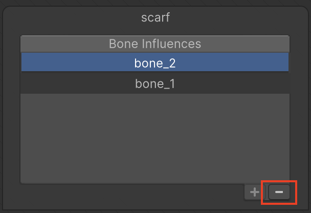 To remove a bone, select it from the list and select Remove (-) at the bottom right of the list.