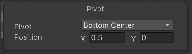 Position | Enter a value from 0 to 1 to adjust the X and Y position of the pivot. This is a normalized value from 0 to 1, where (0,0) is lower left of workspace and (1,1) is the upper right of the workspace. |