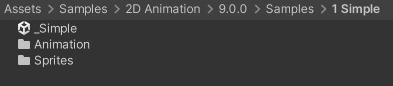 This sample shows a simple single Sprite rigged actor, which was imported with the PSD Importer package. The Project and Assets can be found in the following location (the version number folder may differ):