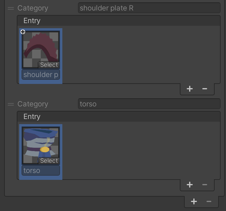 has been setup so that the torso Category is not overridden, which allows it to use the Sprite from Knight.spriteLib