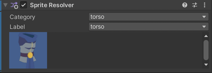 GameObject. Assign a Sprite to each Sprite Resolver that corresponds to the body part they are attached to. For example, the torso