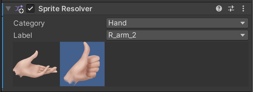 GameObject, and add the Sprite Resolver component. Select theR_arm_2