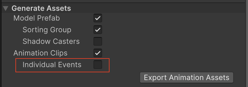 There are times when you prefer to receive all animation events from an Animator in one method. To do this, begin by unchecking the Individual Events toggle in the Aseprite Importer inspector.