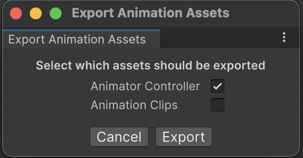 • In the popup, make sure the Animator Controller checkbox is checked. Leave the Animation Clips checkbox unchecked if you do not wish to edit any of the clips.
