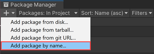 6. Select Add package by name. Name and Version (optional) fields appear.