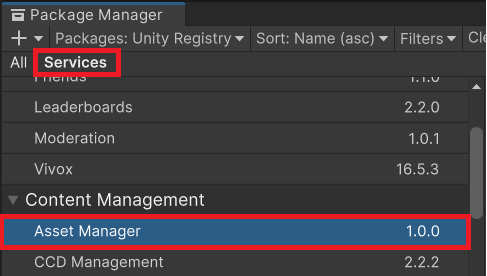 2. Go under the Services tab, scroll down and select Asset Manager under Content Management.