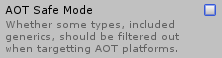 However, before building to AOT platforms, you need to run an additional step in order to trick the Unity compiler into forcing the compilation of reflected members and types ahead of time.