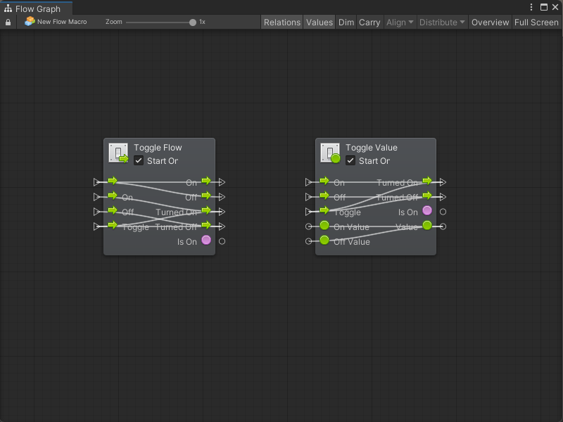 Note: Turning on relations in the toolbar is a good reminder of the flow between the toggle ports: