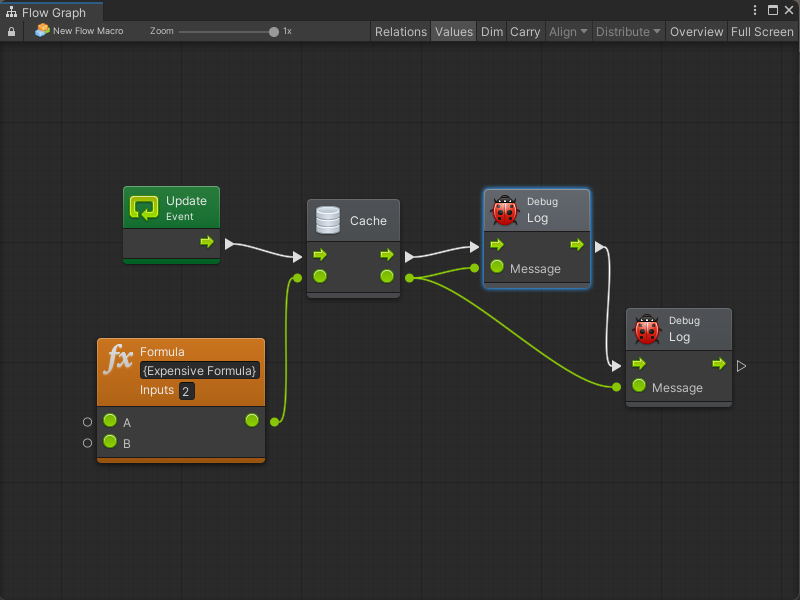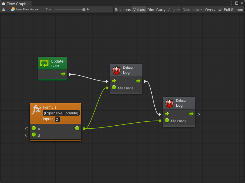 For example, pretend we had an expensive formula to calculate, and we wanted to log the result twice. Using this graph, the formula will be calculated twice:
