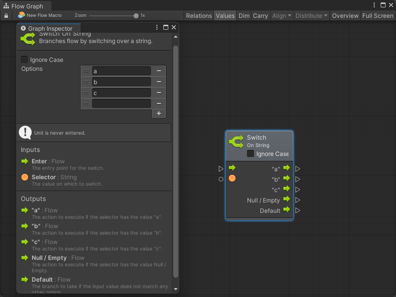 You can also branch depending on the value of an enum, a string or an integer. These units are called Switch units, like they are in scripting.
