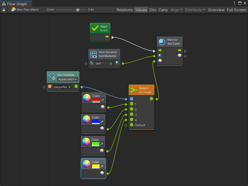 Because they're so similar, we're not going to cover each of them, but here's an example of a Select On Integer unit that chooses a color based on a player number: