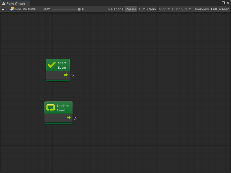 Two simple common events are Start and Update, both located under Lifecycle.