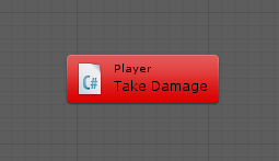 Bolt can automatically call methods, fields and properties from any custom script in your project. For example, you can create a node from a custom Player class with a TakeDamage method: