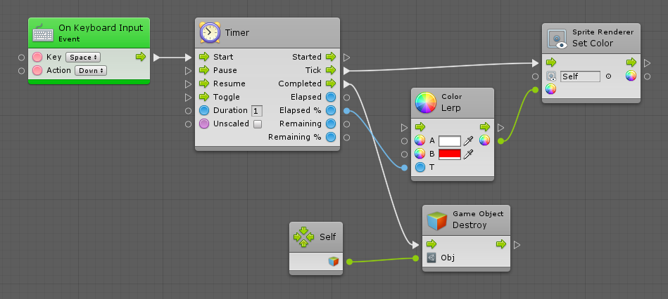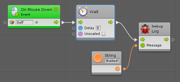 The Wait For Flow unit allows you to delay execution until all input flows have been entered at least once. It's a useful way of grouping conditions that occur over multiple events or frames. In other languages, this concept is sometimes called "promises".