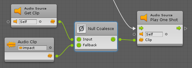 For example, here, the null coalesce unit defines a default fallback audio clip in case the one on the audio source was missing: