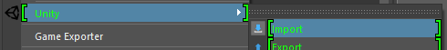 | File > Unity > Export | Exports both the Models and animation contained in the export sets selected for export. |