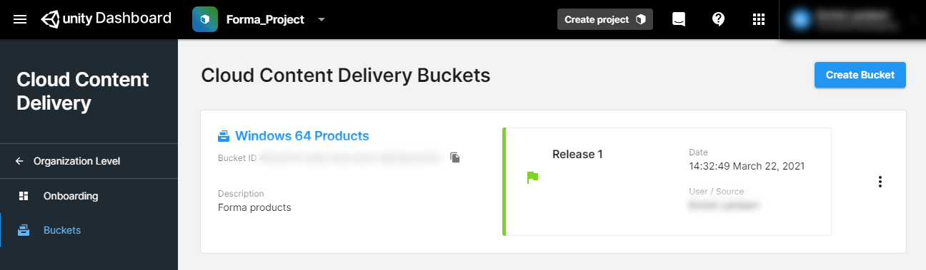 Your first release appears in your Unity Cloud Content Delivery bucket, tagged as latest.