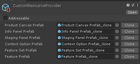 | Prefab | PrefabProductReference | Editor & Build | False | Use direct Prefab references instead of the Addressable Assets System. Automatically includes Products in the final build. |