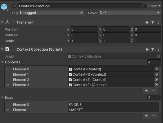The Context Collection GameObject groups and defines a schema for contexts.