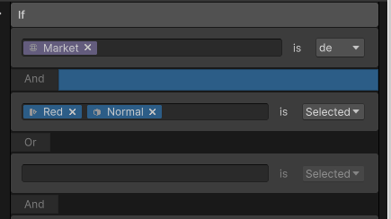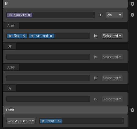 - Under If, use the left drop-down field to select the Variant Set, Pack Set, or Context that activates this rule. For example, to select a specific Market.