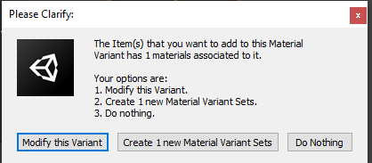D. Adding other Material Variants to the set as needed