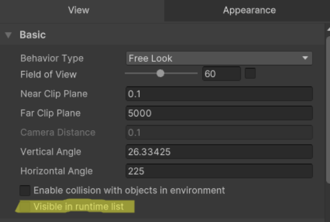 - In the details editor for that object, deselect the Visible in Runtime List checkbox.