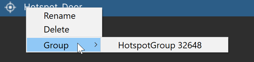 - To add a Hotspots to the group, select and hold (right-click) the Hotspot you want to add, select Group, and choose the group you want to add it to.