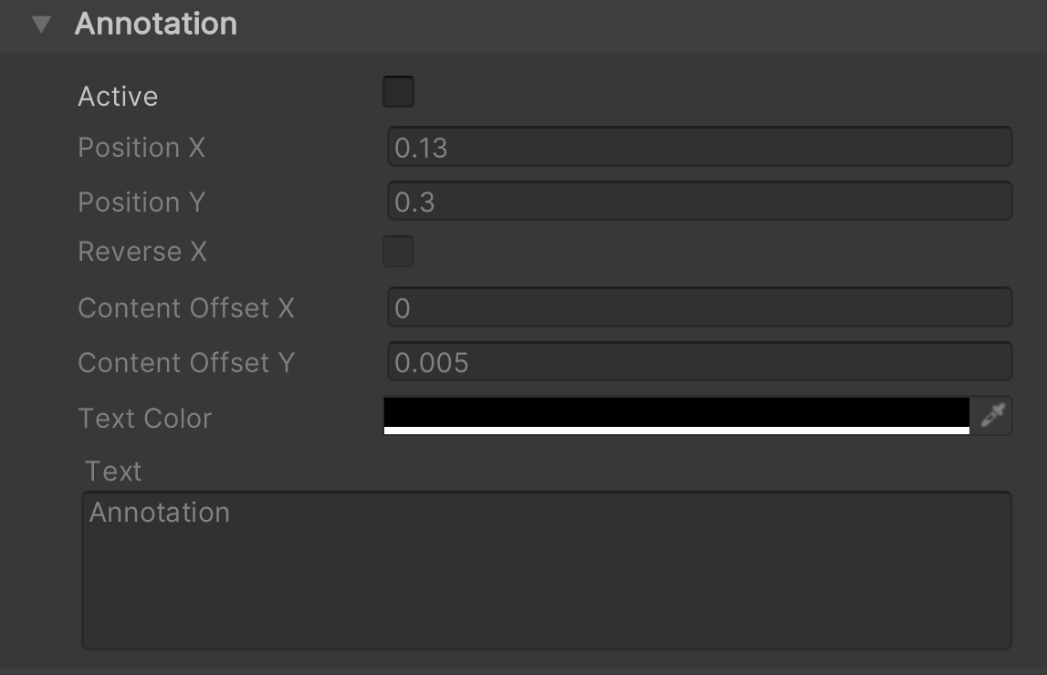 - Use the Position X and Y parameters to select a postion for the annotation.