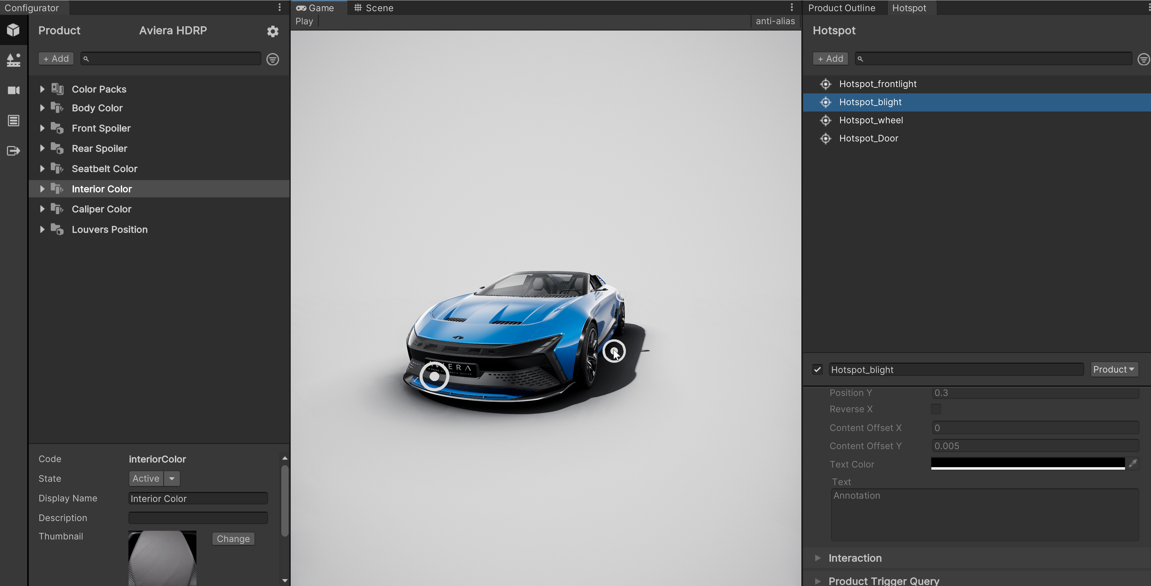 - You can create rules for when a given Hotspot is visible to the consumer. For example, you can create one Hotspot on a door and then show Hotspots for window controls or the steering wheel only after the door opens.