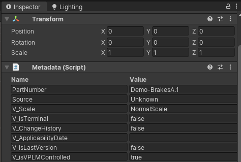 Import Metadata | Imports metadata that is contained in the hierarchy of the initial model (if any). Metadata can carry information such as part numbers, ownership, physical properties, and part type. Any node of the CAD model hierarchy can carry metadata. The metadata information is stored in a Metadata component on GameObjects.![]() WARNING: Using a Rule Set that modifies the hierarchy could destroy metadata. Asset Transformer Toolkit has capability to import CAD metadata, such as types, manufacturer information, physical properties, and ownership. |