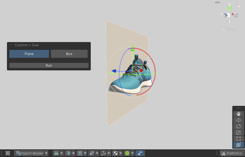 With the new CustomWidget and BaseAction APIs, you can now fully customize your custom Actions UI using UI Toolkit, build your own gizmo manipulators and get progress callback from the execution. The following illustration shows a custom action implementing a CustomWidget and a gizmo driving the Algo.SawWithPlane SDK function: