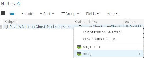 You can launch Unity from a Note entity in the Notes page: