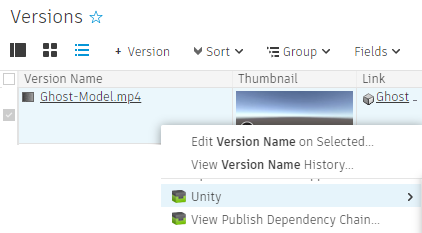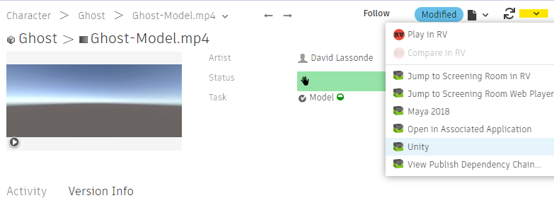 You can launch Unity from a Version entity in the Versions page: