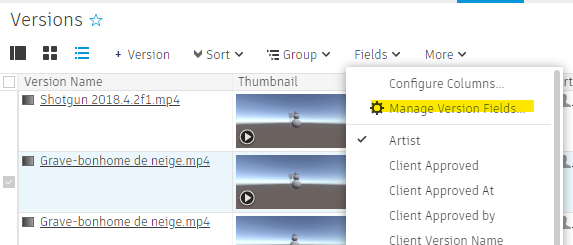 Manage Version Fields...