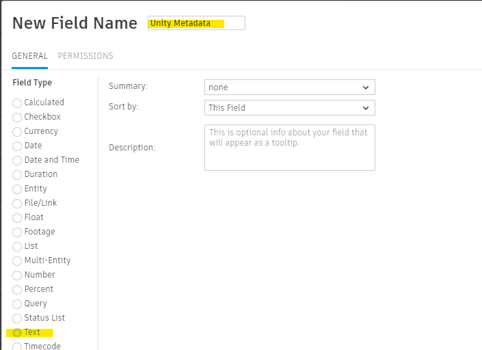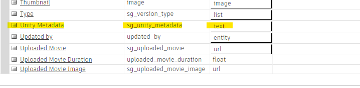 Unity Metadata, the field code should besg_unity_metadata, the data type should betext