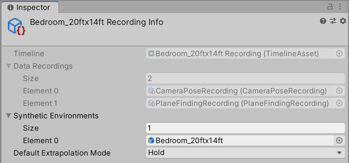 The recording info has a list of synthetic environment prefabs - the set of recordings available for use with a simulation environment consists of recordings that include that environment in this list. Generally, you shouldn't have to modify this list because when you record a session from a simulation, the recording automatically saves a reference to the current environment. You can still add other environments that you think a recording applies to.