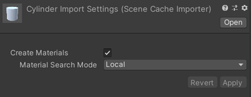 When an .sc file is inside the Unity project, clicking on the .sc file will open its import settings in the inspector. These import settings are similar to the import properties in the inspector, and can be overridden in the inspector as well.