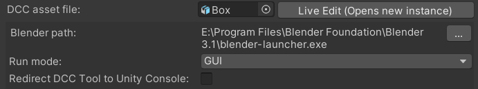 We can assign a DCC asset file inside the Unity project to launch a new instance of the applicable DCC tool and open the file.