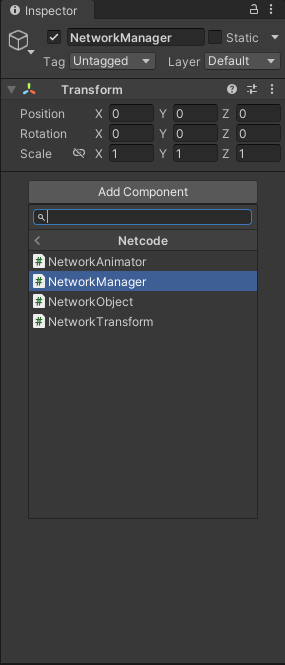 - Select Netcode > NetworkManager from the component list.
